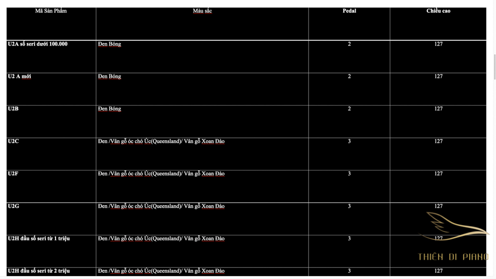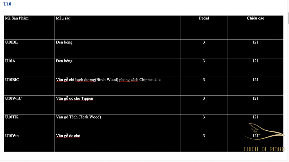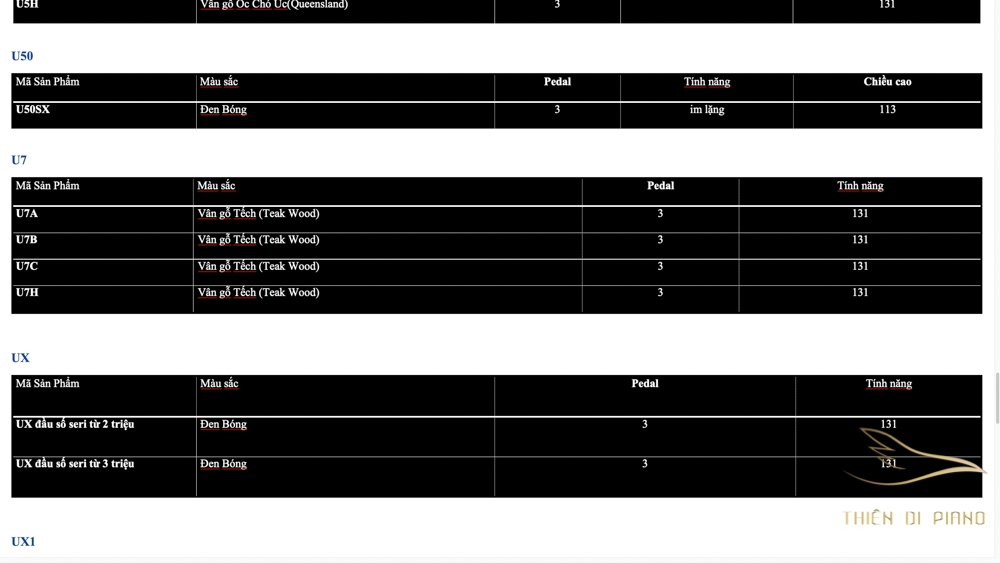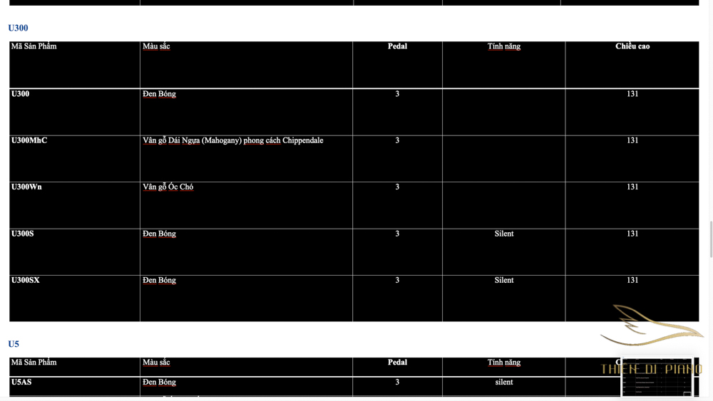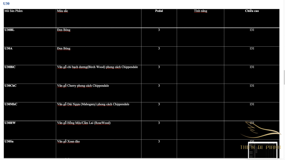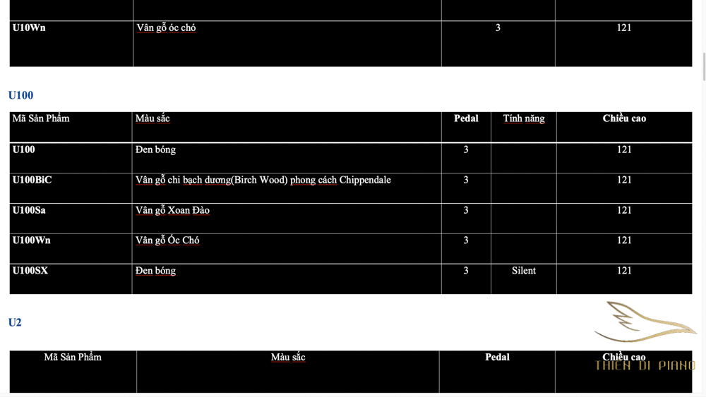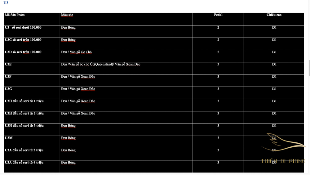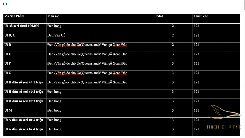 Danh sách Piano Yamaha Series U bởi Thiên Di Piano